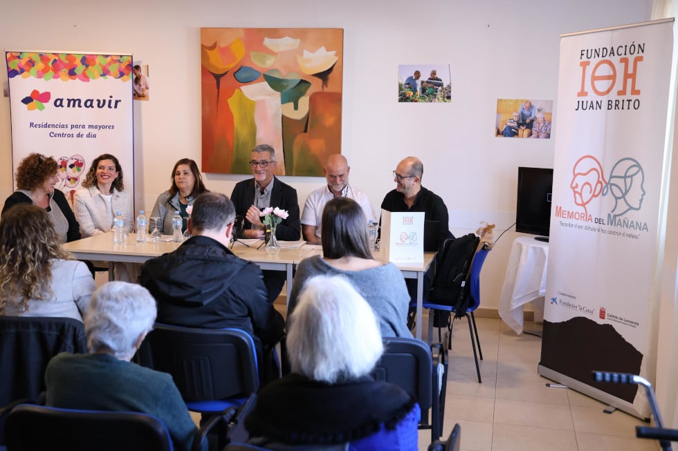 La residencia de mayores Amavir Tías ha acogido esta mañana la rueda de prensa de presentación del proyecto «Memoria del mañana», puesto en marcha por el Cabildo de Lanzarote junto a la Fundación Juan Brito y la Fundación La Caixa. Se trata de una iniciativa innovadora que busca mejorar la calidad de vida de las personas mayores de la isla que viven en residencias a través de actividades culturales y de preservación del patrimonio. En el acto han estado presentes el consejero de Bienestar Social e Inclusión del Cabildo, Marci Acuña; el presidente de la Fundación Juan Brito, Pedro José Brito; la responsable de la Fundación La Caixa en Canarias, Jasmina Hormiga; y la directora de las residencias Amavir Tías y Amavir Haría, Sandra Llorente.