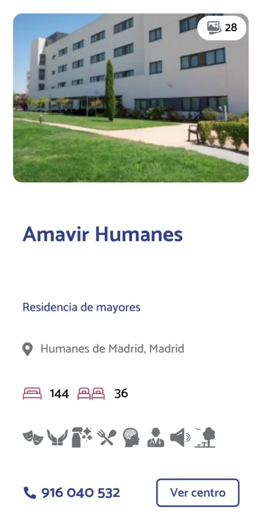 Entre las residencias de mayores en Leganés, Amavir ofrece un enfoque centrado en el bienestar emocional y físico, con terapias individuales, actividades socioculturales y apoyo familiar continuo. Cuenta con habitaciones dobles e individuales, zonas comunes adaptadas y un equipo interdisciplinar con amplia experiencia.